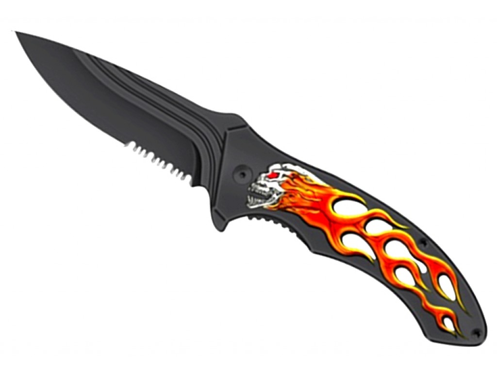 Falcon 7 1/4" Spring Assisted Pocket Knife Flame Handle