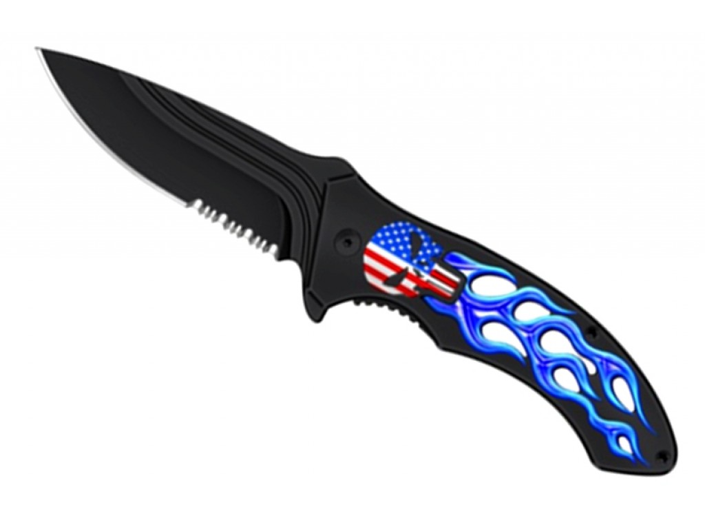 Falcon 7 1/4" Spring Assisted Pocket Knife US Flag Skull Blue Flame Handle KS1648-9Brand: FalconProduct Code: KS1648-9 Falcon 7 1/4" Spring Assisted Pocket Knife US Flag Skull Blue Flame Handle KS1648-9