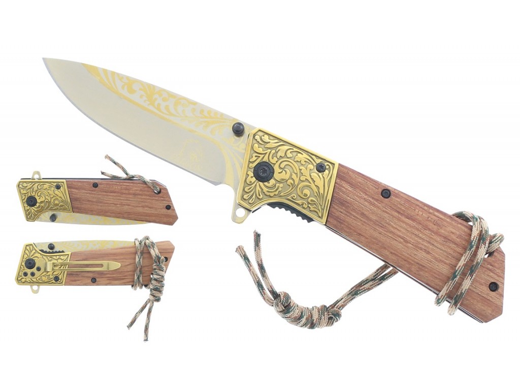 Falcon Spring Assisted Knife Wood Handle KS2376GD