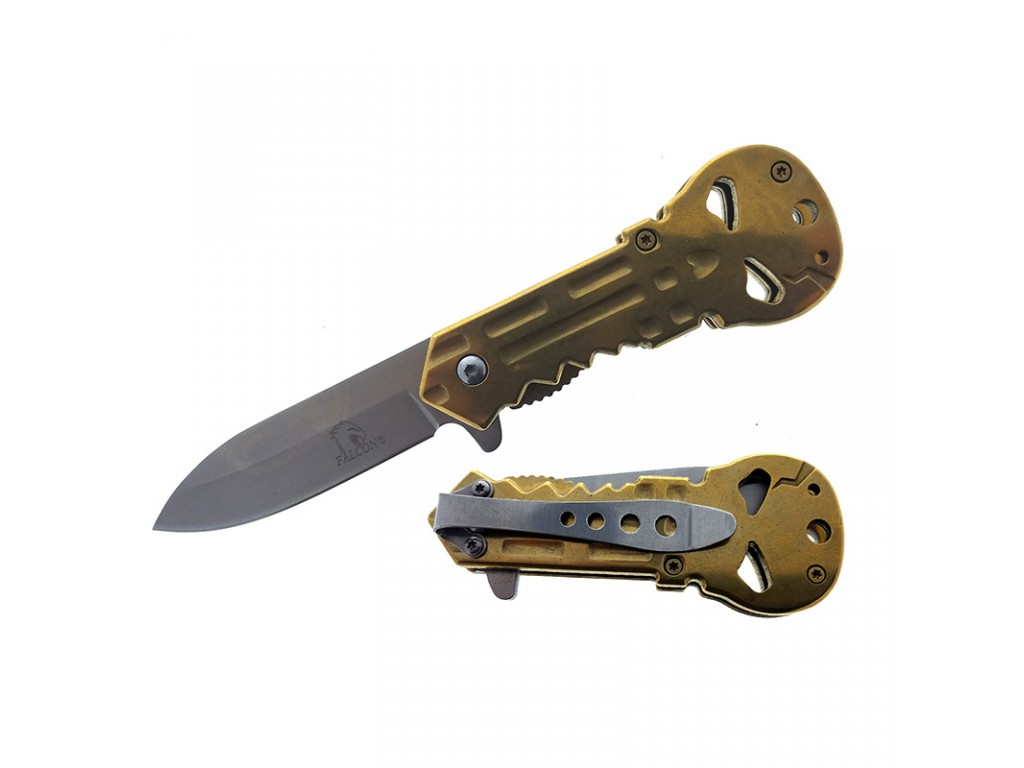 Falcon 4" Blade Spring Assisted Knife Gold Skull Handle KS33197GDBrand: FalconProduct Code: KS33197GD Falcon 4" Blade Spring Assisted Knife Gold Skull Handle KS33197GD