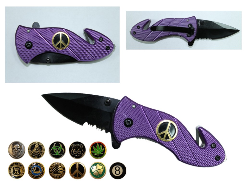 440 Stainless Steel Half Serrated Purple Coated Blade.