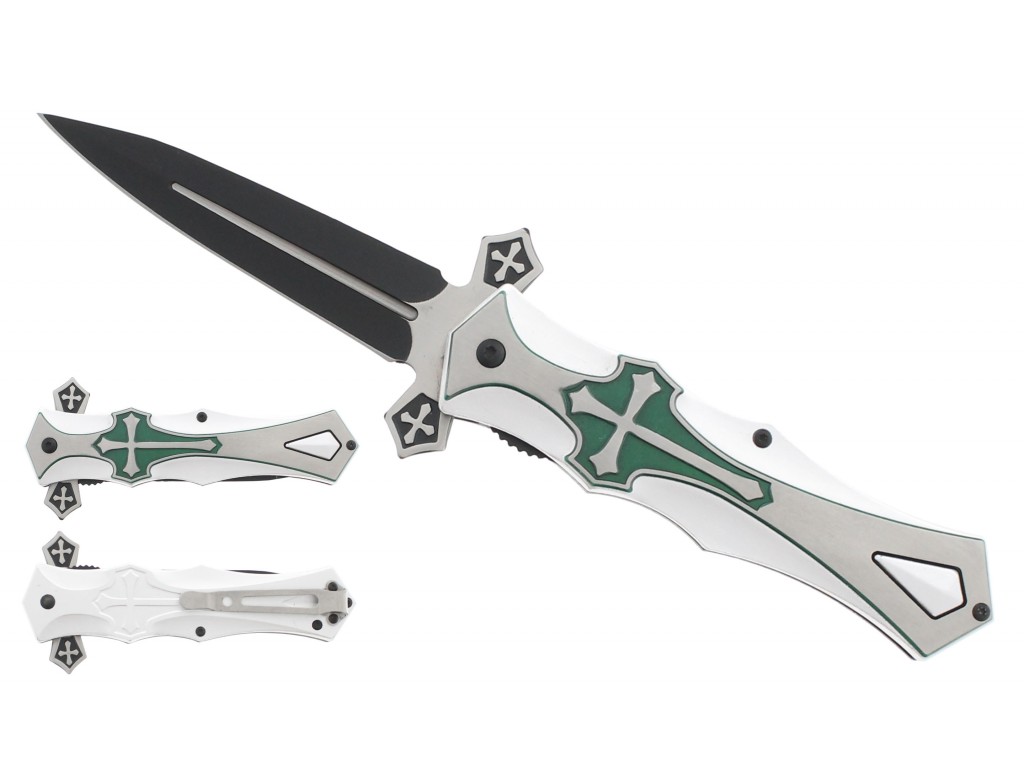5" Green & Silver Iron Cross Handle