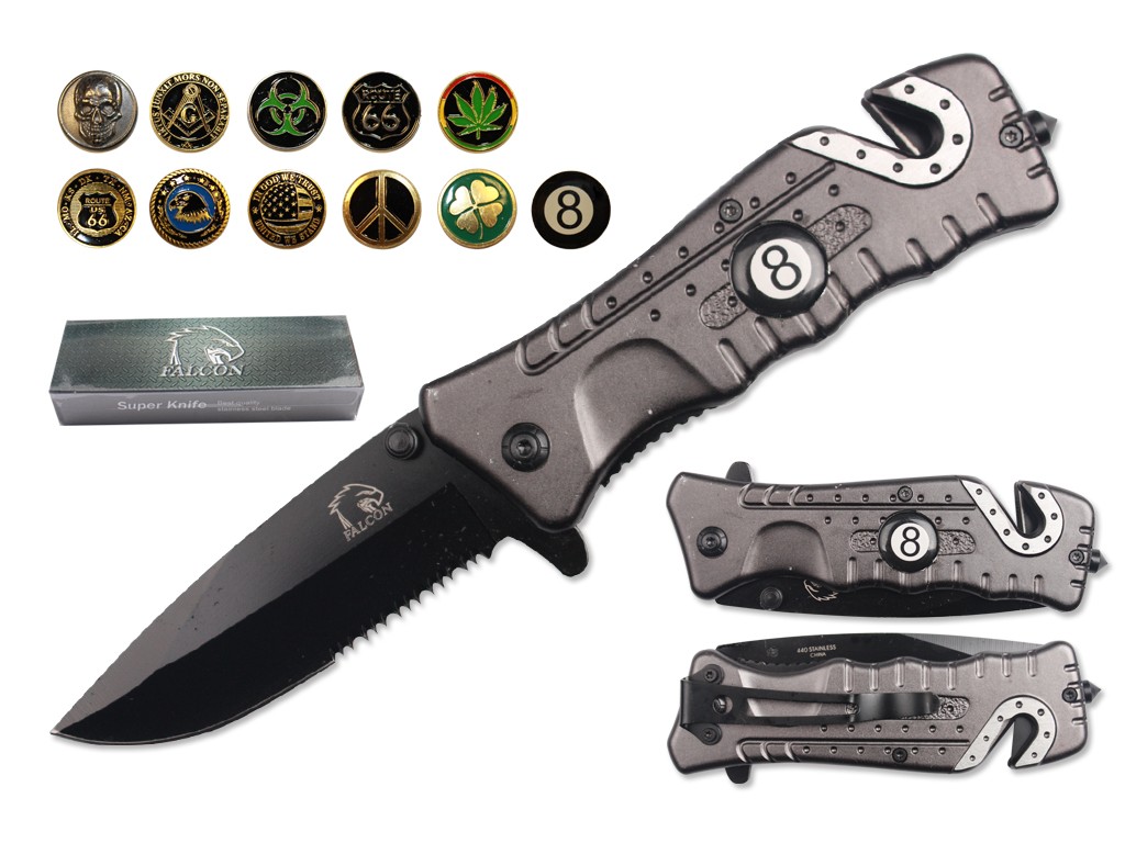 - 8" Overall, Integrated glass breaker & seat belt cutter handle